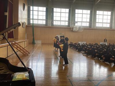 生徒会長は、「いつも味方でいてくれました。先生方と過ごした日々は、とても充実していました。学んだことを生かしてこれからも頑張っていきます。」というお礼の言葉を伝えました。