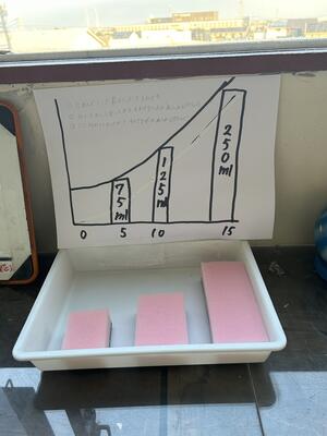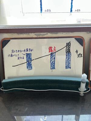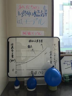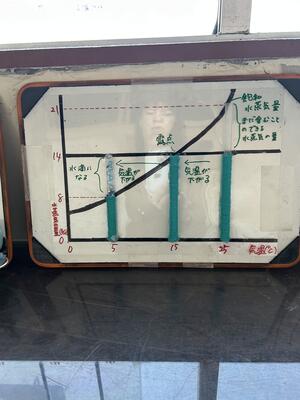 まず、理科。飽和水蒸気と気温のグラフについて、班ごとにモデルを考え、理科を深めました。