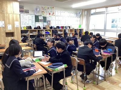 ”みんなに平等に接する”、”その人のことを受け止める”等、色んな意見が出ており、生徒一人一人が自分事として考える姿が見られました。