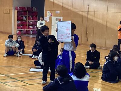 6限目に全校生徒が体育館に集まり、人権集会を行いました。