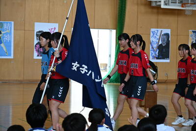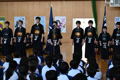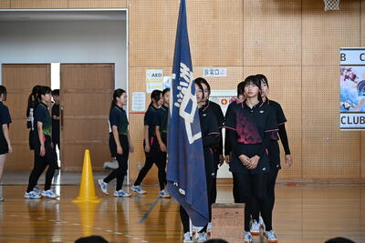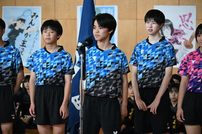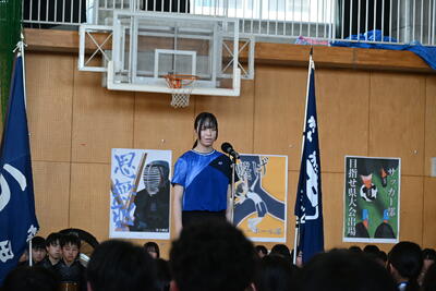 ユニフォームや胴着に身を包み、吹奏楽部の演奏に合わせて体育館に入場してきた選手達は、いつもより頼もしく見えました。その後、各部ごとに大会に向けての宣誓をしました。どの部も、決意に満ちた素晴らしいあいさつをしていました。