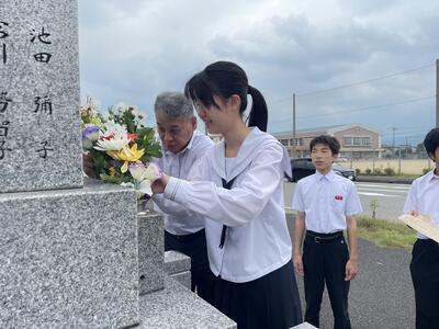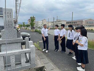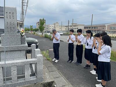 77年前の1948年6月28日、福井震災が起きました。当時の森田第二小学校では5年生の6名が犠牲となりました。本校ではフェニックス通り沿いにある震災慰霊碑へ、毎年献花をしています。今年も生徒会執行部の生徒とともに行ってきました。生徒たちは花を供えて手を合わせ、祈りを捧げました。地震の絶えない日本で暮らす以上、震災の教訓を胸に日々備えておきたいですね。