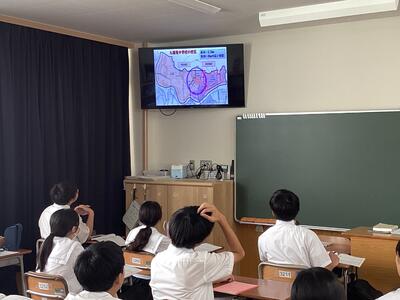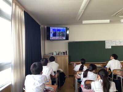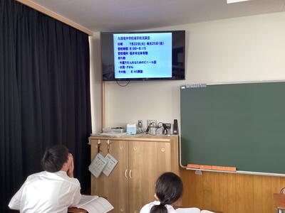 本日は、7月22日(火)に行われる九頭竜中学校通学状況調査について、校長先生に校内テレビ放送でご説明していただきました。