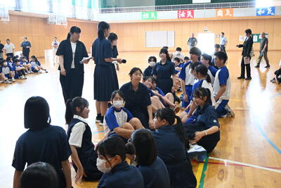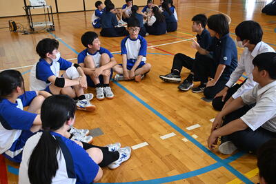 初めのうちは、どちらも緊張していましたが、自己紹介をしたり、ゲームを一緒に楽しむ中で、少しずつ打ち解けて、「そっちの学校にバレー部はあるの?」「体育祭っていつ?」など気になることをお互いに聞き合うことができるようになりました。