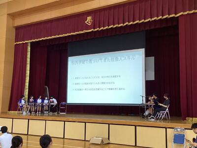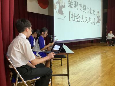 今回は、来週に行われる企業とのパネルディスカッションに向けて、各クラスから選ばれた代表班が発表を行いました。