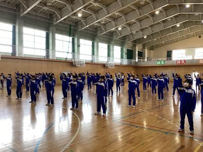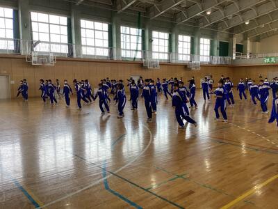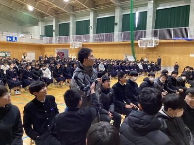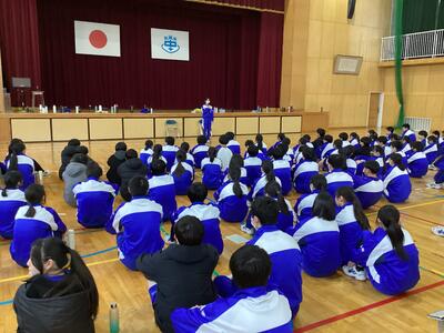 全校生徒で体育館に集まり、3年生を送る会を行いました。