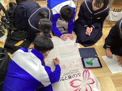 昨年度に引き続き今年も1年生がふくい咲良マラソンの応援旗作りに取り組んでいます。
