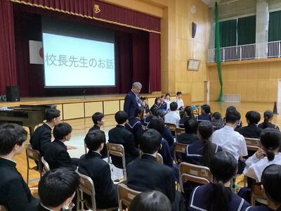 生活オリエンテーションでは、新入生が真剣な表情で先輩方・先生方からの説明をしっかりと聞いている姿が印象的でした!今回説明された生活上の心得や注意点を忘れずに、新鮮な気持ちで森田中学校での生活を過ごしてほしいと思います!