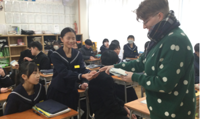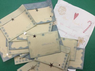 メッセージには英語、スロベニア語、日本語が使われ、日本人のサポーターさんに習ったひらがなで「あけましておめでとう」と書かれていました。カードを受け取った生徒たちは嬉しくて、みんなニコニコしていました。