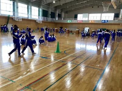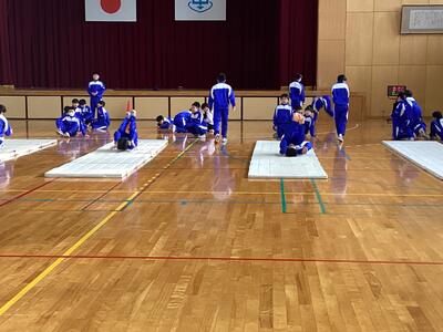 本校の器械体操は、マットと跳び箱です。まだ始まったばかりで怖さもあるようですが、先生のアドバイスを受け、1時間の中でもこつをつかでんで上達していました。