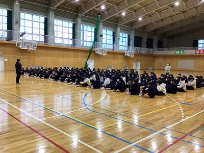 明日からの冬休みが安全に過ごせるように、警察のスクールサポーターの方からSNSのトラブルやその他窃盗や闇バイトといった犯罪についてのお話を聞きました。