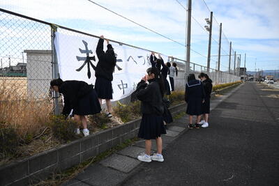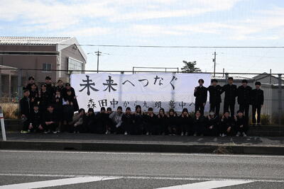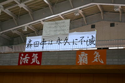 3年生 手作り横断幕 投稿: 森田2 (12:12) カテゴリー: 今日の出来事 3年生の総合的学習で行っている、「Well-Beingプロジェクト ~森田地区に貢献しよう~」の一環で、3組では、「森田中学校から九頭竜中学校へ」というアピールの横断幕を作成しました。 一文字一文字、心を込めて書いていました。 道路沿いと、体育館内の2カ所に掲示しました。この機会に、是非ご覧ください。 Tweet -