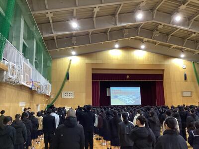 校長先生の話では、「この校舎で過ごせるあと3カ月(実質2ヶ月)を大切にしてほしい。悔いのないように生活してほしい」「新しい学校、新しい校舎になっても、学校として大切なのは、そこで生活する皆さんの心です。是非、きれいな心でいてほしい」とのお話がありました。