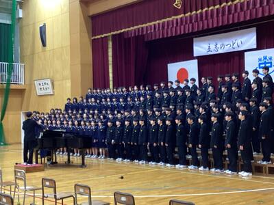 これまでの成長ムービーを挟み、最後に学年合唱で「越えてゆけ」を披露しました。