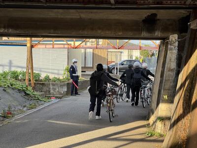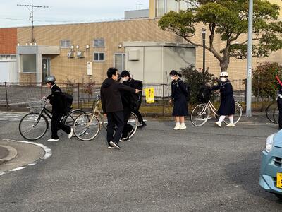 本日は、2回目の登校シミュレーションがありました。学校職員、市教委の皆様、福井県警の皆様が見守る通学路を通って、生徒たちが北体育館に集合しました。地域の皆様方にもご協力していただき、無事登校シミュレーションを完了することができました。本当にありがとうございました!